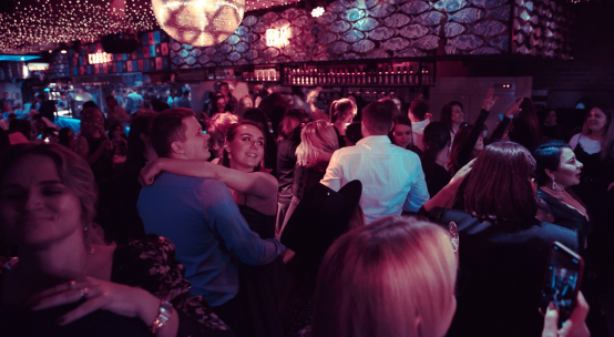 Основной зал рассчитан на восемьдесят посадочных мест, но в тёплый сезон действует трехуровневая веранда-палуба, откуда открывается головокружительный вид на храм Христа Спасителя. Терраса вмещает более трехсот гостей, поэтому летние вечеринки особенно зажигательные и шумные.