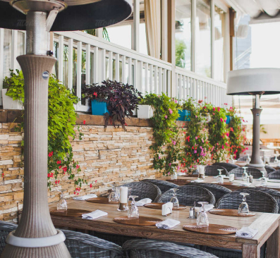 Летняя веранда ресторана Shore House — это островок рая в большом городе, увитый ароматными цветами пергола. Бело-синяя гамма в дизайне, настоящие пальмы, колонны в античном стиле создают по настоящему курортную картину. Дополняют атмосферу пляжного отдыха экзотические коктейли — их в барной карте множество.