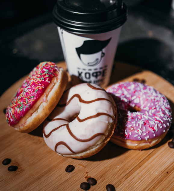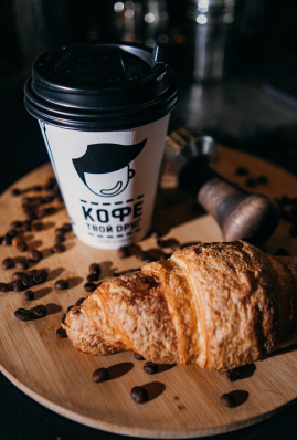 вы точно найдёте напиток на свой вкус. Также у нас прекрасный выбор альтернативных видов молока — банановый, фундучный, кокосовый, миндальный и соевый. К напиткам предлагаем свежайшую выпечку: кукисы с кусочками шоколода, ностальгические песочные колечки с арахисом, аппетитные сочники с творогом и круассаны с разной начинкой, в том числе и несладкой.