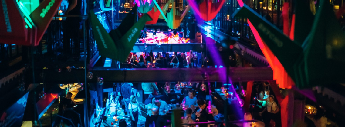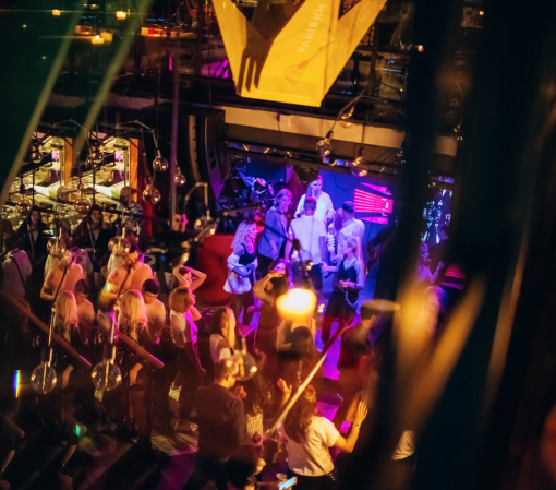 По выходным ресторан трансформируется в клуб с вечеринками и концертами: выступают профессиональные артисты, либо за музыкальный пульт встаёт диджей.