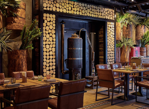 Гостеприимное заведение от Аркадия Новикова на Цветном бульваре, вход в который украшает нарядный русский валенок высотой шесть метров. Внутри — высокие потолки и окна в два этажа.