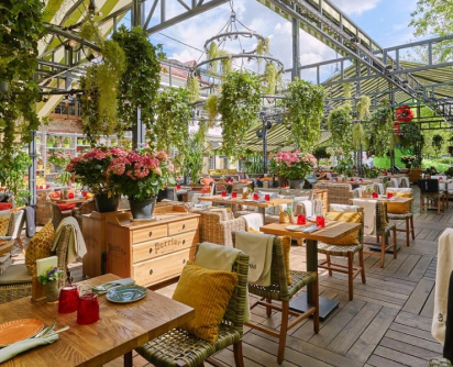 Во внутреннем дворике в тёплый сезон расставляют столы, и он становится естественным продолжением ресторана.